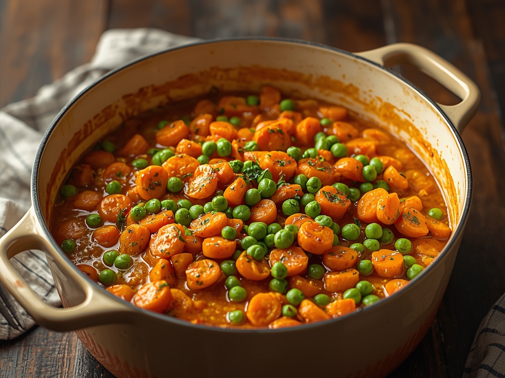 • Pro Tip: Add a pinch of sugar to enhance the sweetness of the carrots and peas.