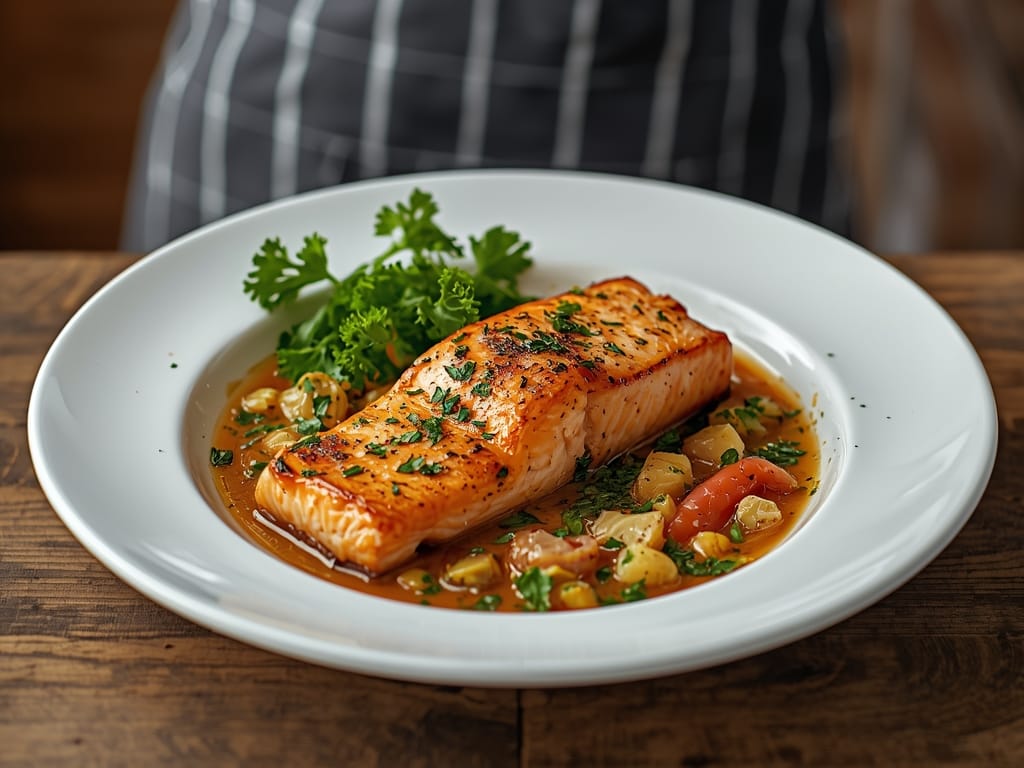 - 9. Garnish with fresh parsley and lemon wedges, if desired.