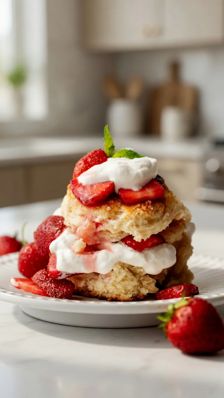 Always use cold butter and cold buttermilk — this is the non-negotiable foundation of flaky, tender biscuits. Warm butter melts into the dough before baking and eliminates those gorgeous layered pockets. Do not overwork the dough; mix only until the ingredients just come together. Overmixing develops gluten and results in tough, dense biscuits that lack that melt-in-your-mouth quality. Let your strawberries macerate for a full 30 minutes for maximum juice and sweetness. And always start with a cold bowl when whipping cream for the best volume and stability.