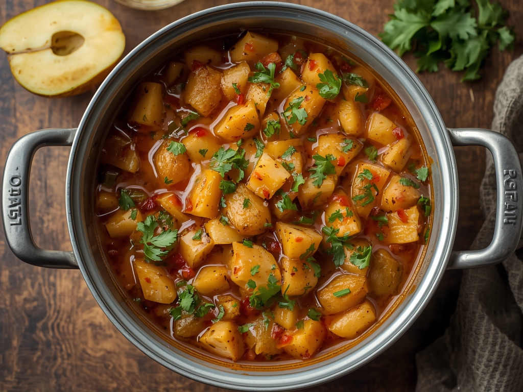 1. 6. Incorporate Apples: Gently add the chopped green apples to the pan. Mix well, ensuring that all the apple pieces are coated with the spice mixture.
