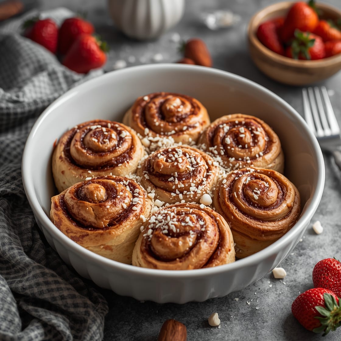 Consider pairing them with a cup of hot coffee or a glass of cold plant based milk for a delightful brunch. For a simple plating idea, arrange the rolls on a platter and garnish with a few fresh strawberries.